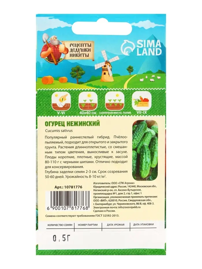Описание семян огурца "Нежинский"