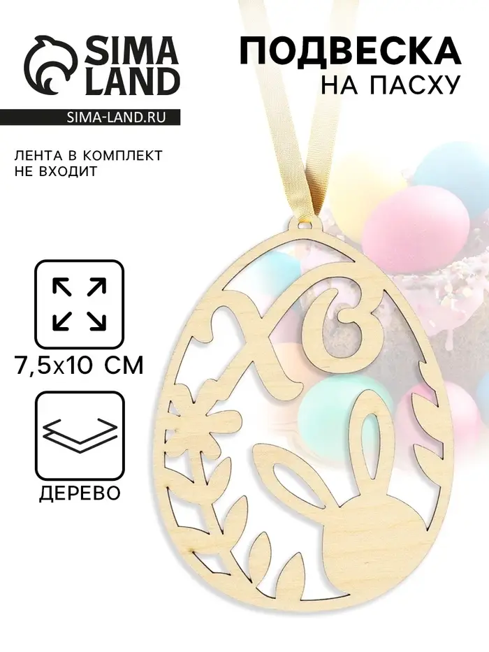 Подвеска деревянная на Пасху «Кролик в яйце», 7.5×10 см