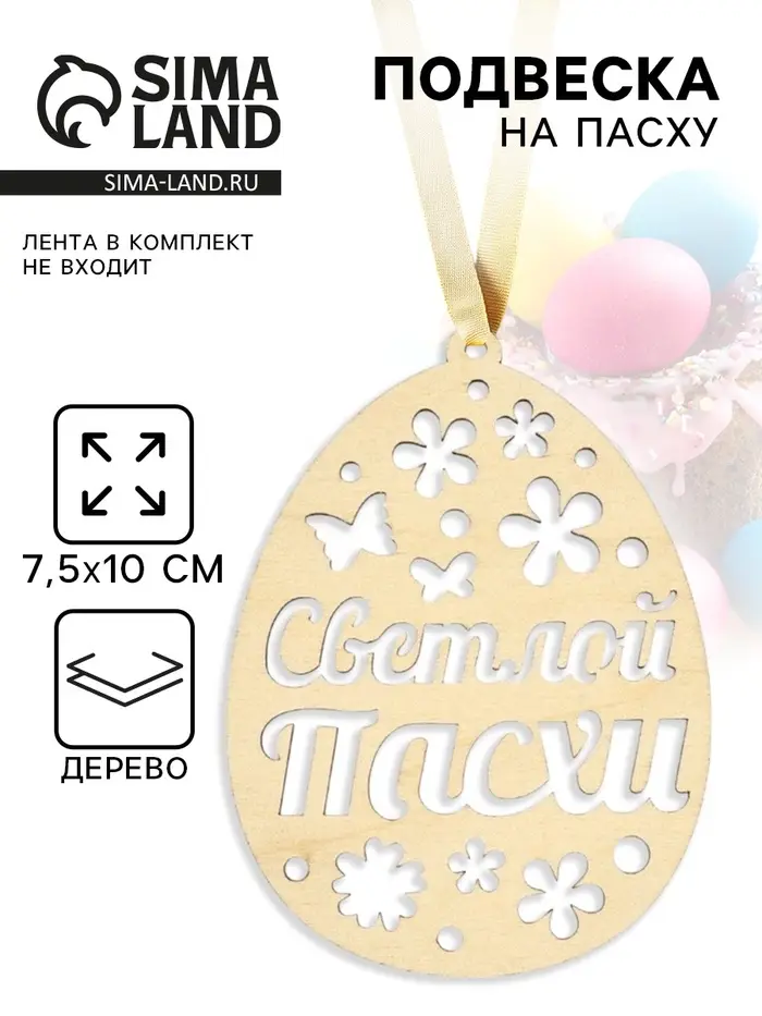 Подвеска деревянная на Пасху «Светлой Пасхи», 7.5×10 см