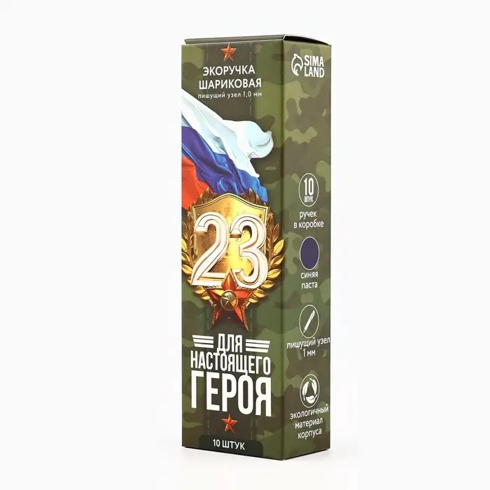Ручка-эко, шариковая, синяя паста, 1.0 мм «Для настоящего героя. 23 февраля»