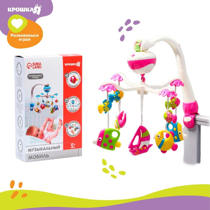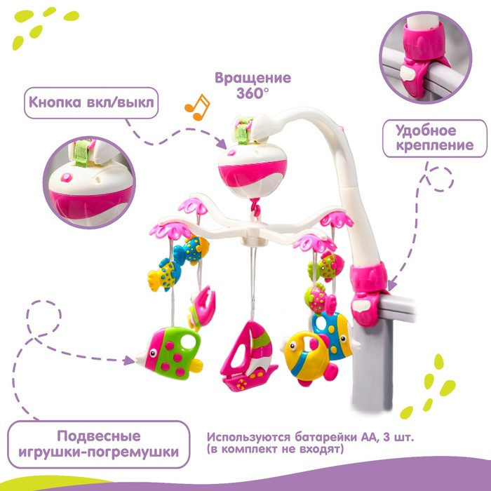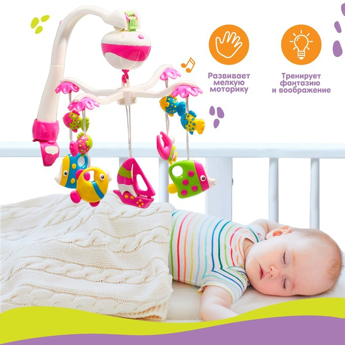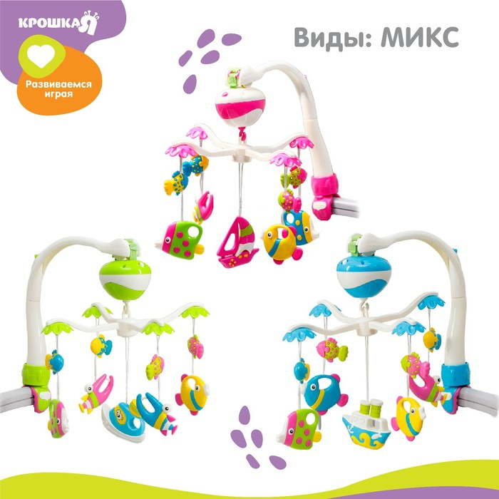 Мобиль музыкальный на кроватку «Рыбки», работает от батареек, Крошка Я
