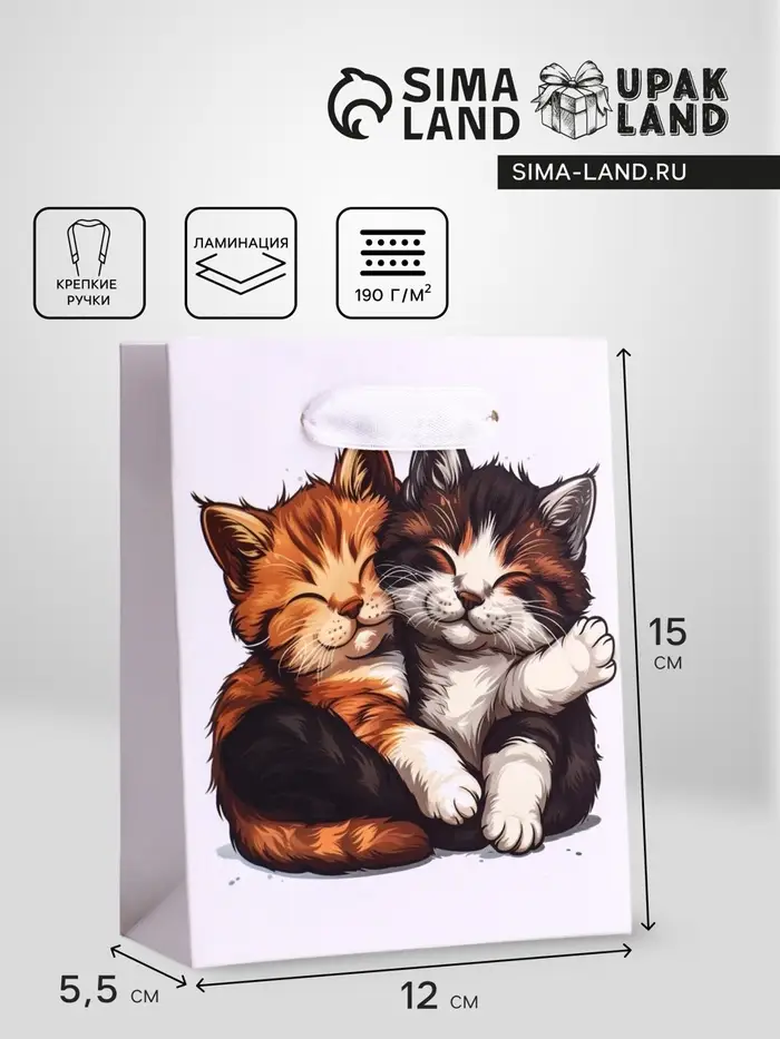 Пакет подарочный вертикальный «Обнимашки», S 12×15×5.5 см