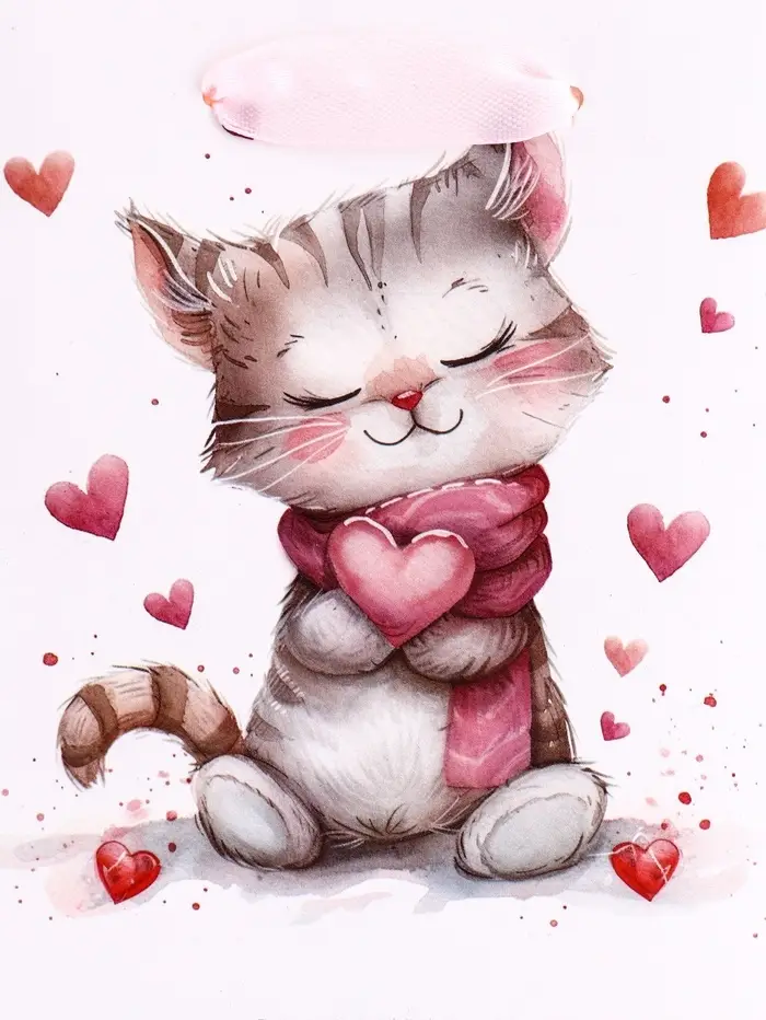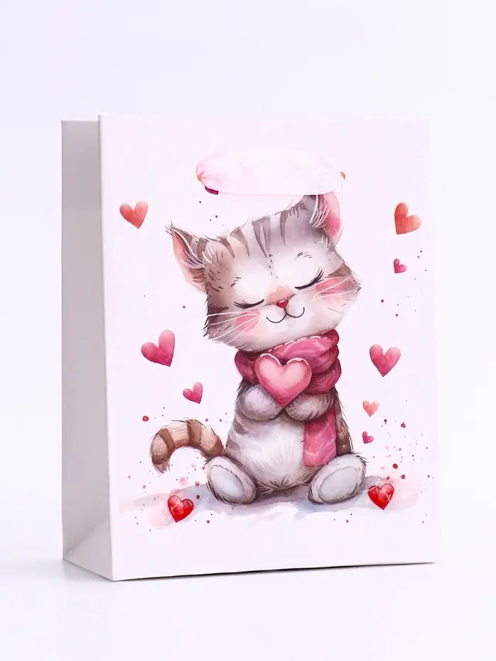 Пакет подарочный вертикальный «Сердечный котик», S 12×15×5.5 см