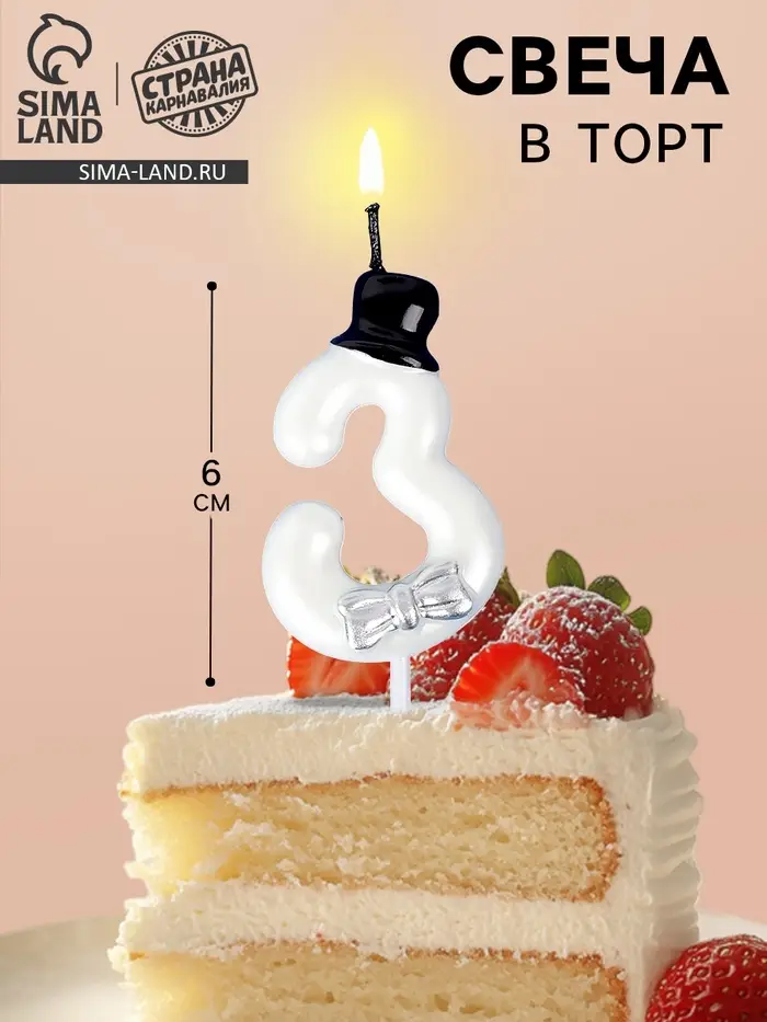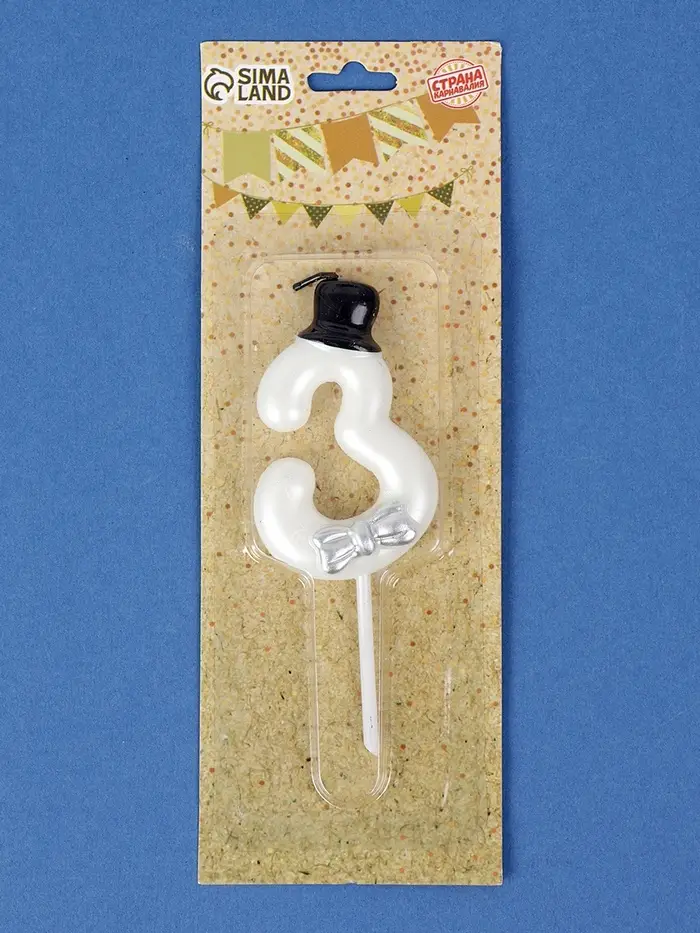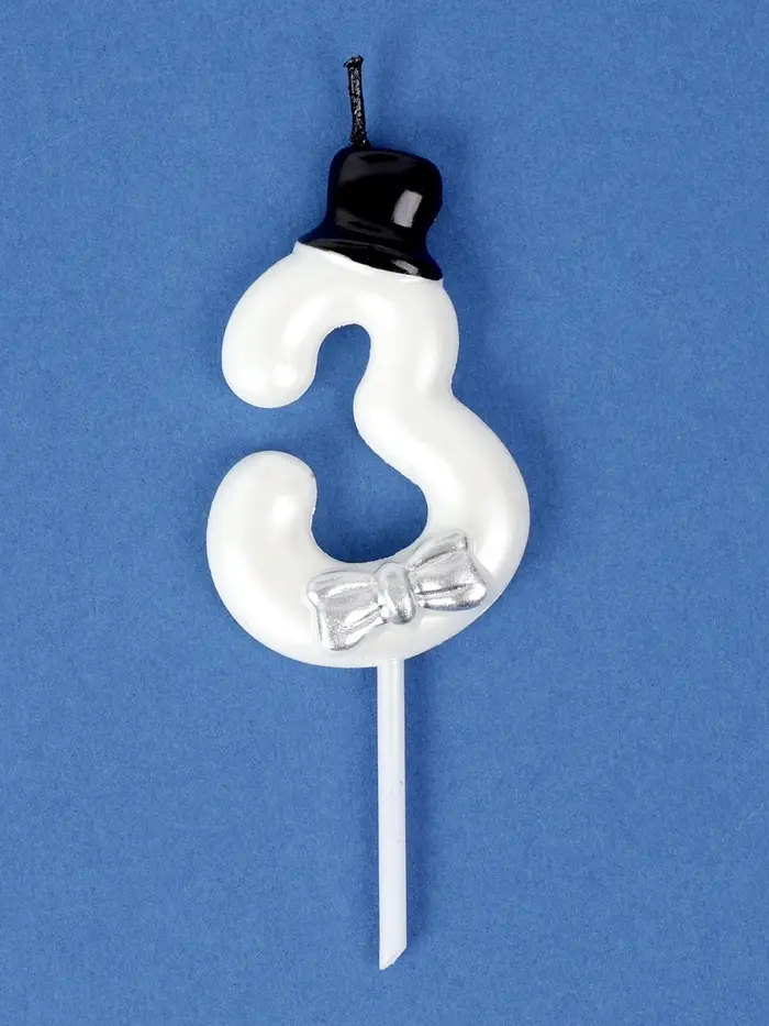 Свеча для торта «Джентельмен», цифра 3, белая