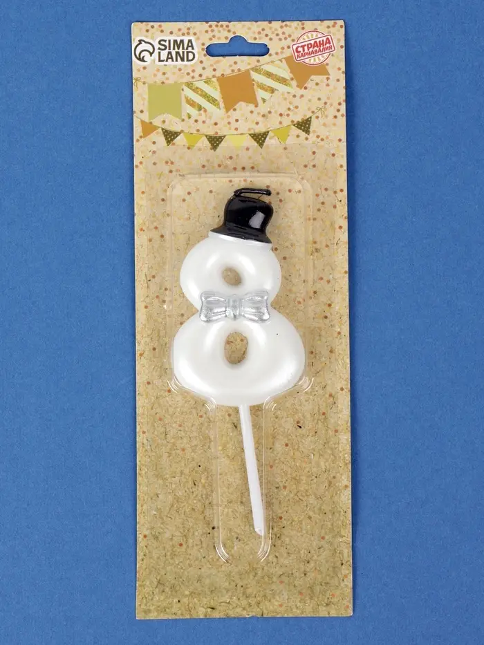 Свеча для торта «Джентельмен», цифра 8, белая