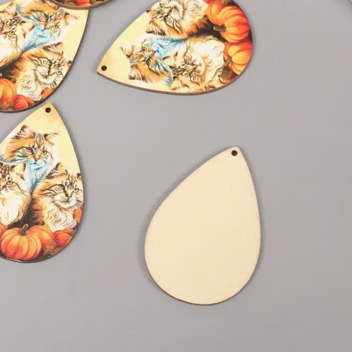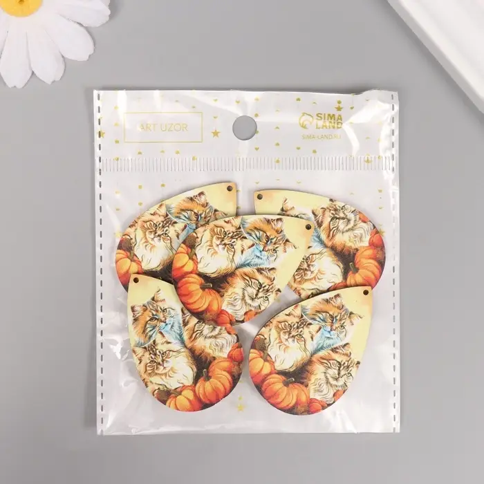Декор для творчества дерево "Три кота с тыквами" 4,9х3,3х0,3 см