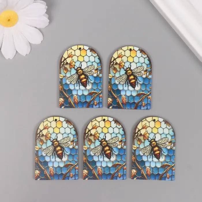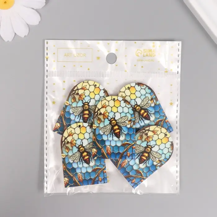 Декор для творчества дерево "Пчела и соты. Витраж" 4,4х3х0,3 см