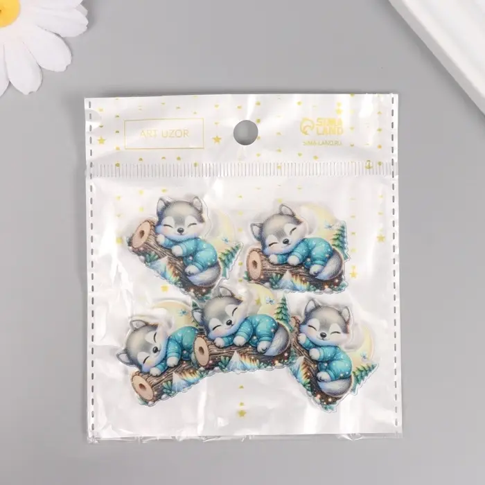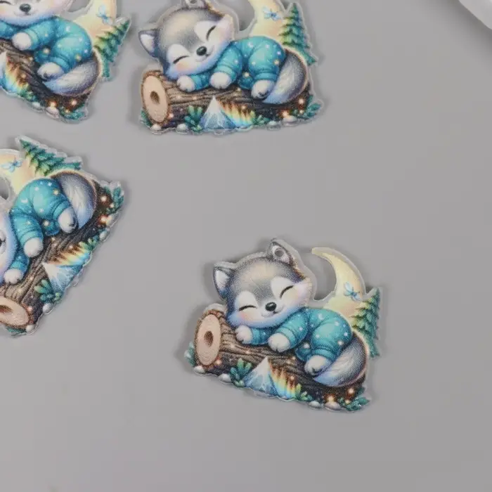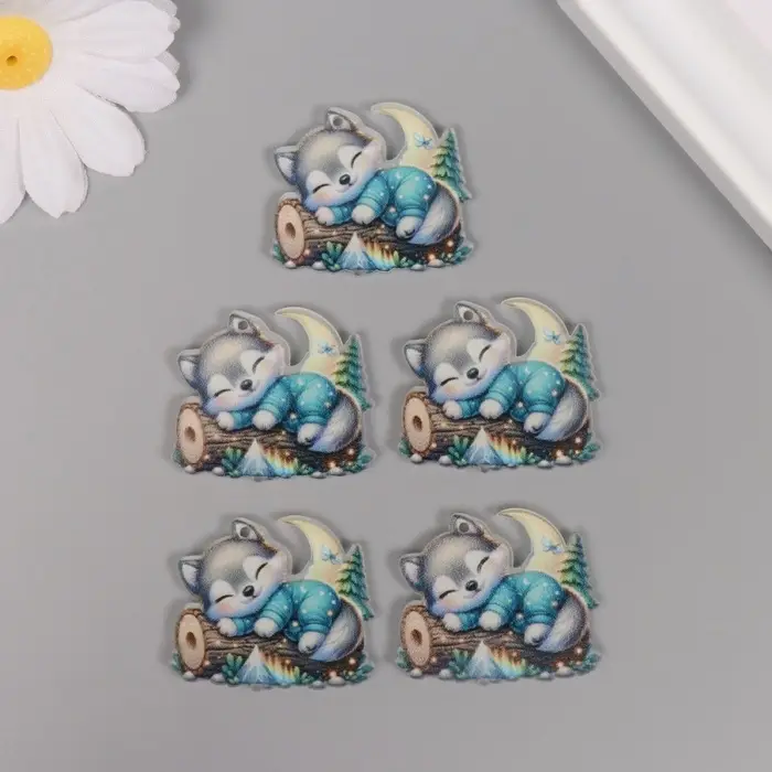 Декор для творчества акрил "Волчонок сладко спит на брёвнышке" 2,9х3,4х0,3 см