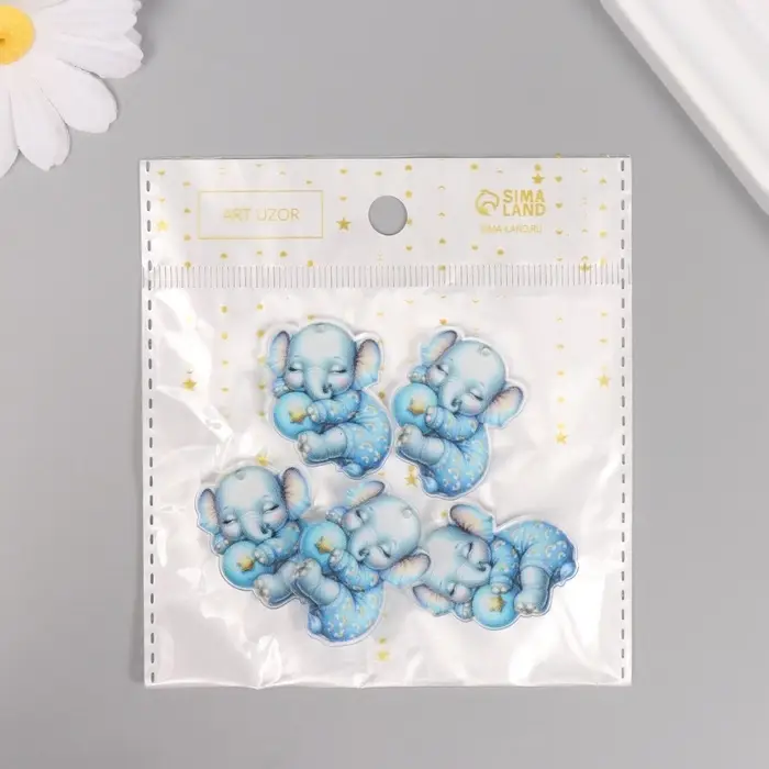 Декор для творчества акрил "Слонёнок в пижамке сладко спит" 2,5х3,4х0,2 см