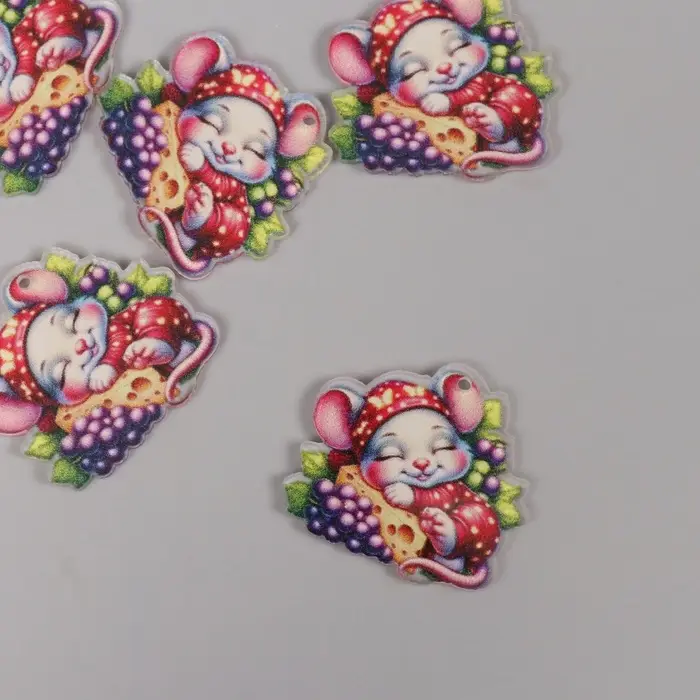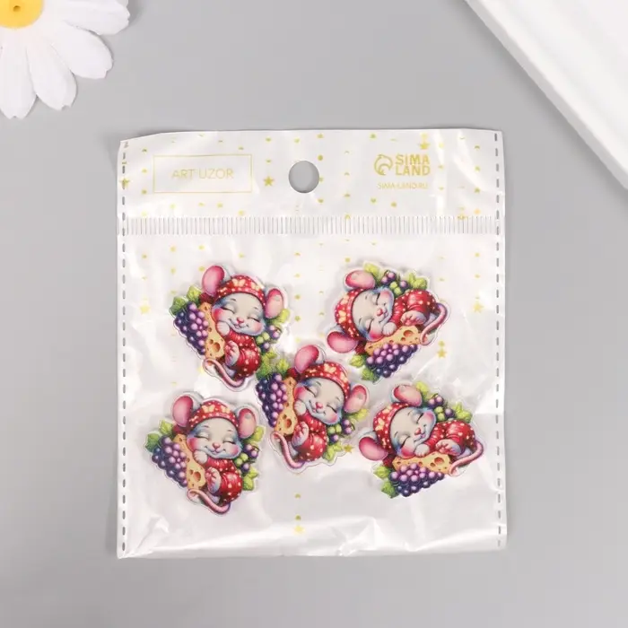Декор для творчества акрил "Мышонок в пижамке сладко спит на сыре" 3х3х0,2 см