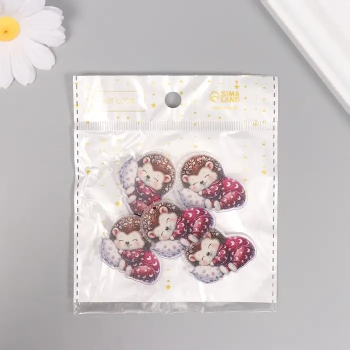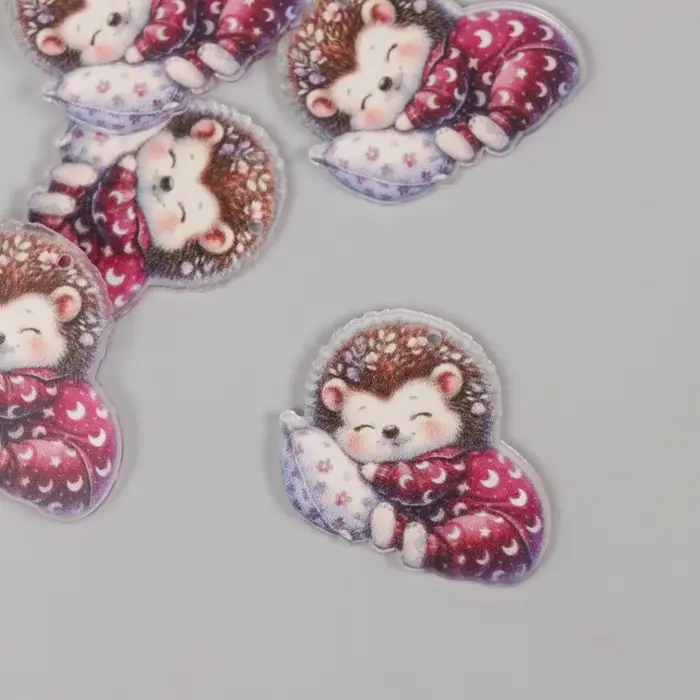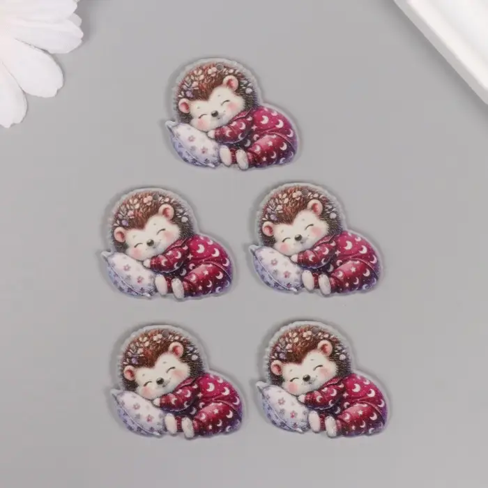 Декор для творчества акрил "Малыш ёжик в пижамке сладко спит на подушке" 2,9х3,4х0,3 см