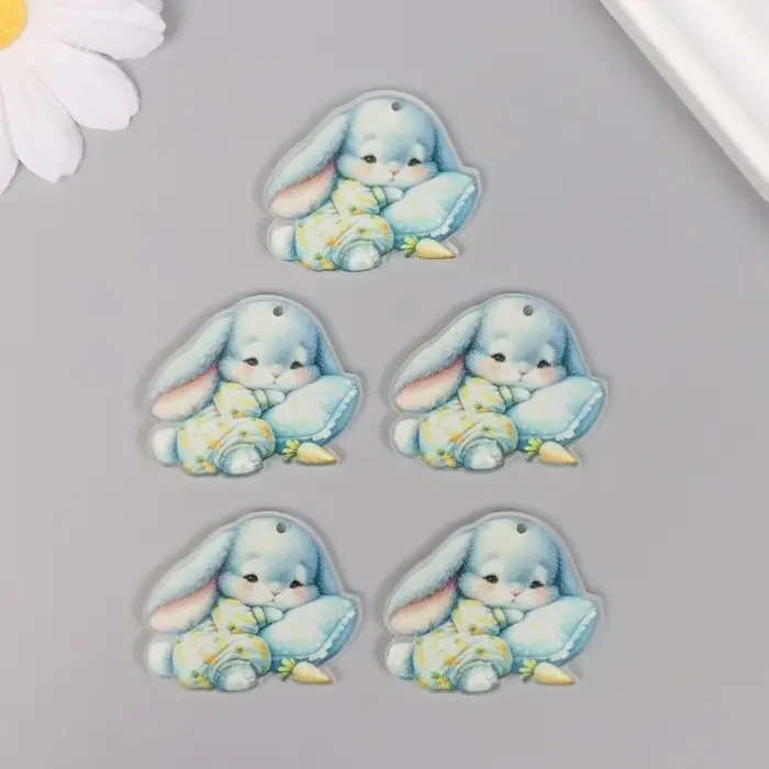 Декор для творчества акрил "Малыш зайка в пижамке засыпает" 2,9х3,4х0,3 см