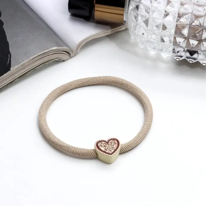 Добавьте изюминку в повседневный образ! Резинка для волос с сердцем – стильный бежевый аксессуар , который не только бережно фиксирует волосы, но и дополняет ваш стиль изящным акцентом.