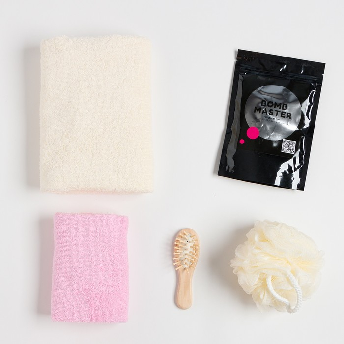 Мочалка, Полотенце, Расчёска для волос, Соль для ванны