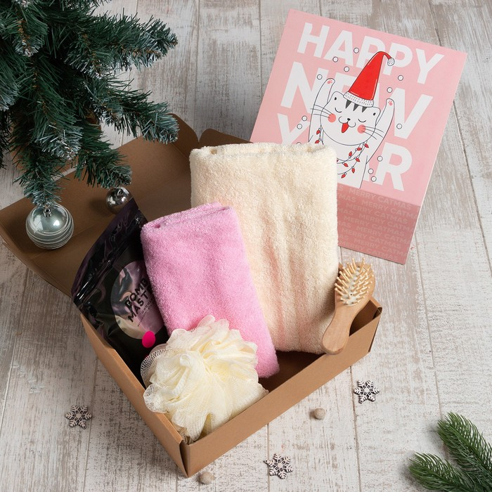 В состав набора входят: Мочалка, Полотенце, Расчёска, Соль для ванны.