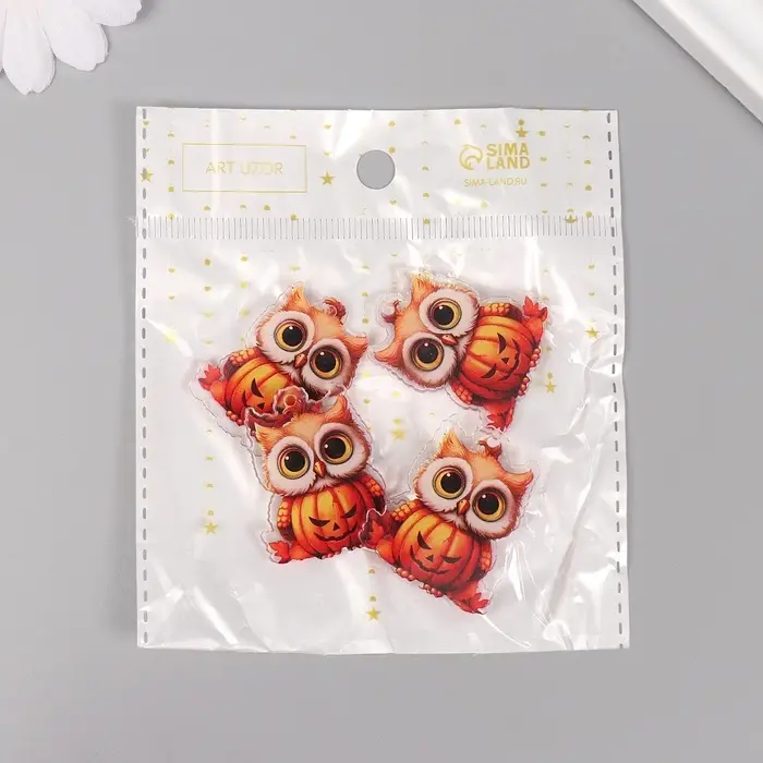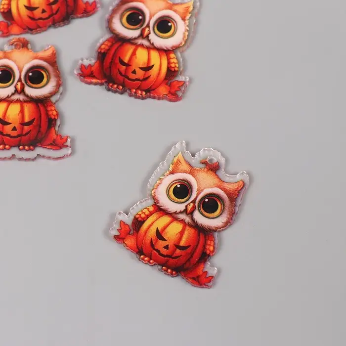 Декор для творчества акрил "Совёнок с тыквой" 3,4х2,9х0,2 см