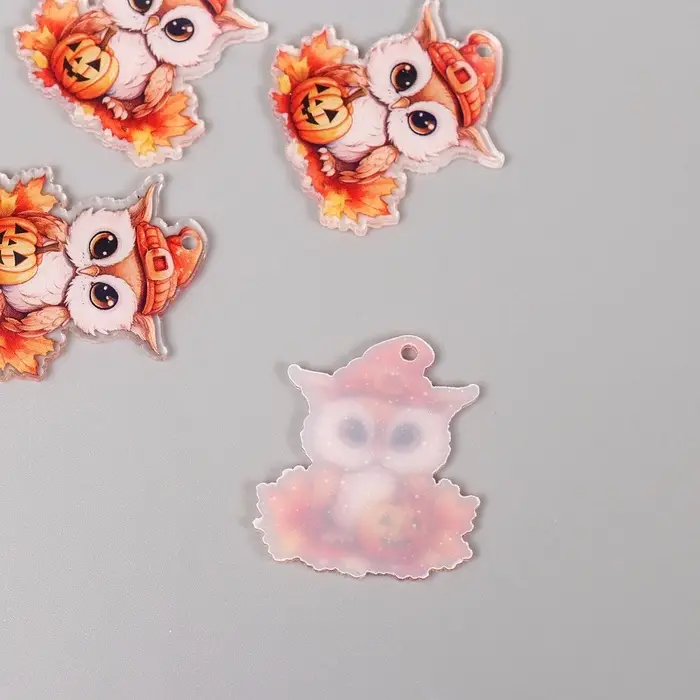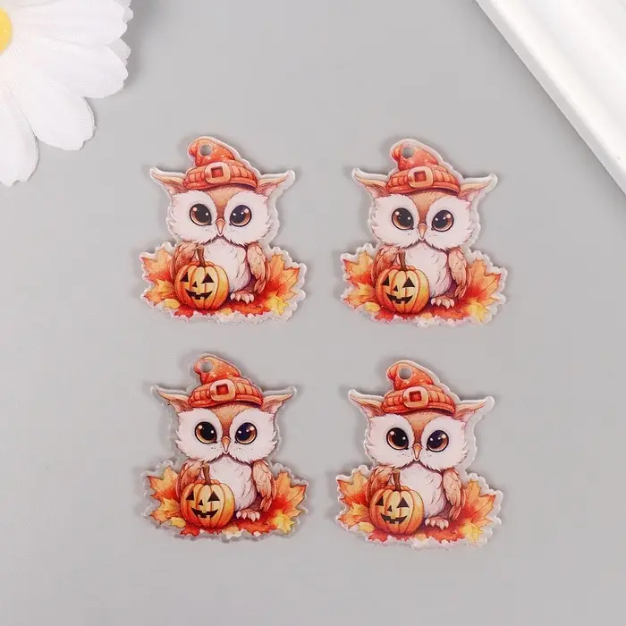 Декор для творчества акрил "Совёнок в шапочке с тыквой" 2,4х2,9х0,2 см