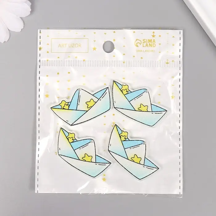 Декор для творчества акрил двусторонний "Бумажный кораблик" блеск 3,4х2,9х0,2 см