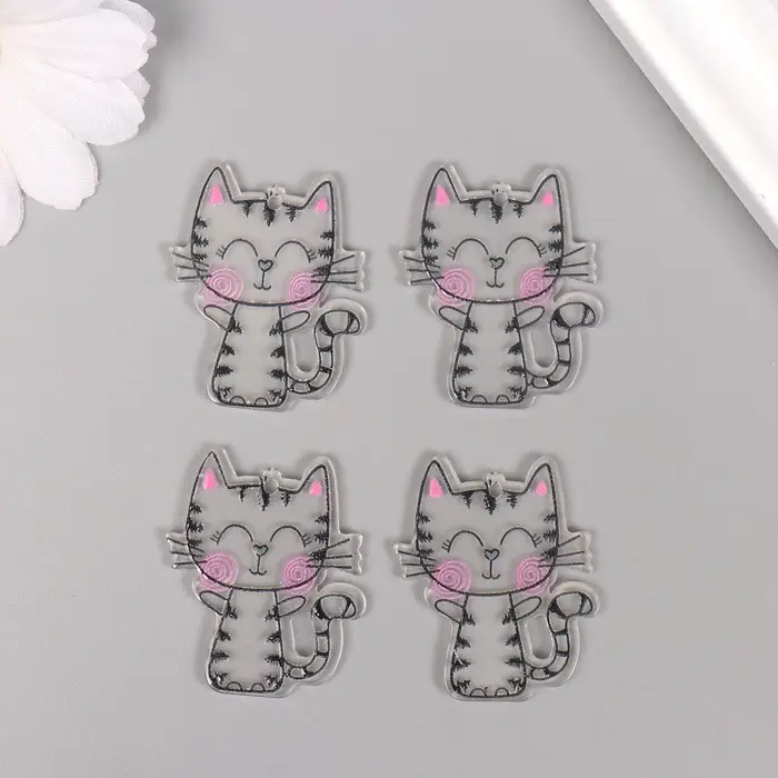 Декор для творчества акрил "Котик с румянцем" 3,5х2,9х0,2 см