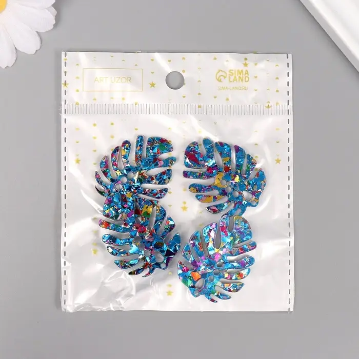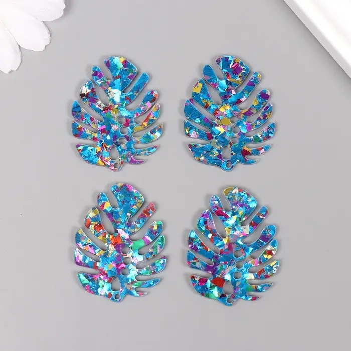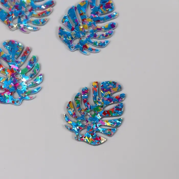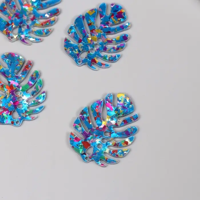Декор для творчества акрил двусторонний "Блестящий тропический лист" 3,9х3х0,2 см