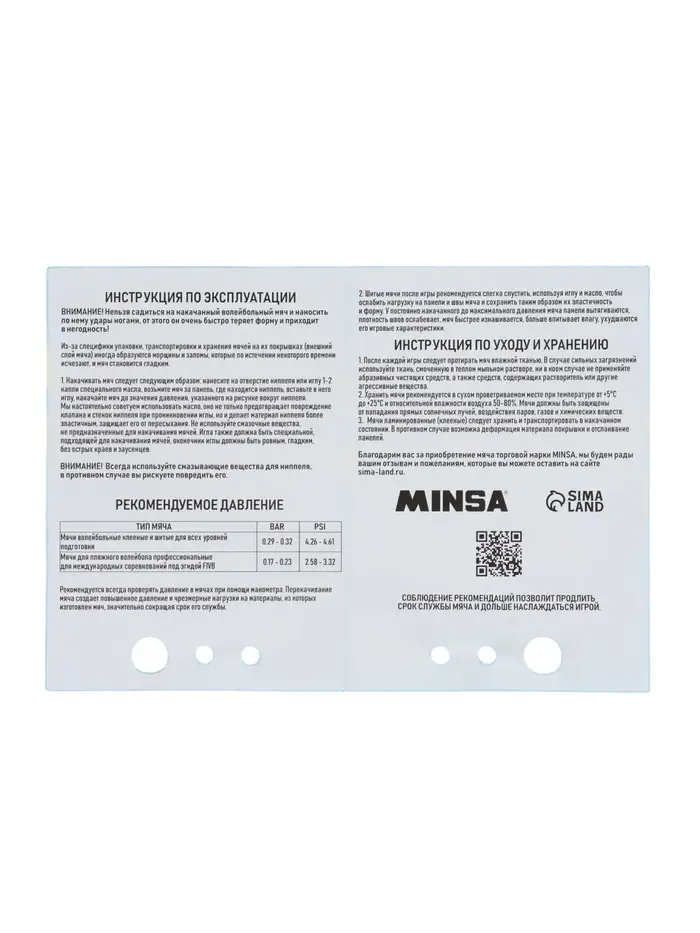 Набор инструкция для волейбольных мячей + иголка в zip-lock пакете (плотность ~80 мкм)