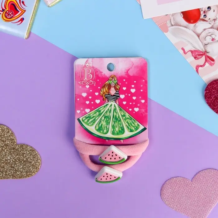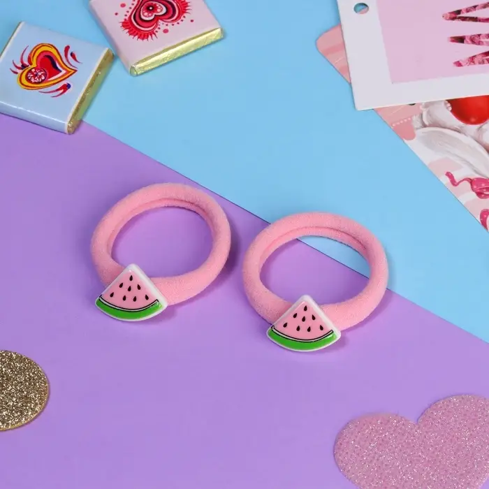 Резинка для волос «Летнее настроение», набор 2 шт., арбуз, 3.5 см, розовая