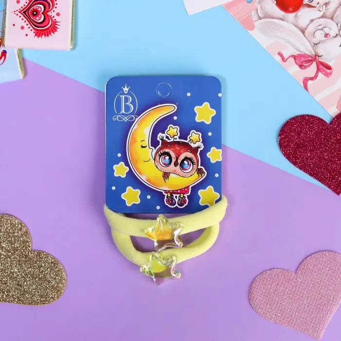 Резинки для волос «Мелодия», набор 2 шт., звезда, 3.5 см, жёлтые