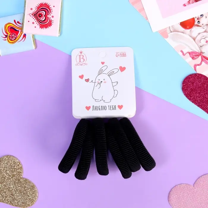 Резинки для волос «Заюшка», набор 6 шт., люблю тебя поцелуй, 4 см, чёрные