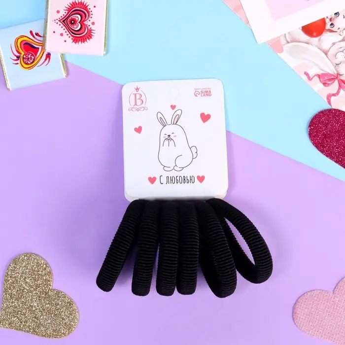 Резинки для волос «Заюшка», набор 6 шт., с любовью, 4 см, чёрные