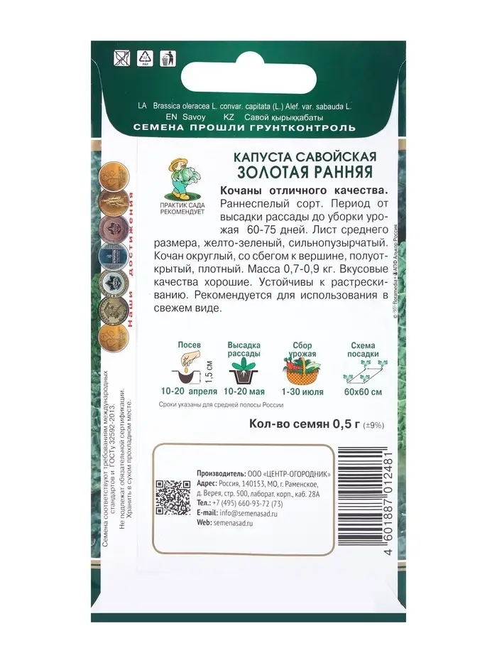 Семена Капуста савойская "Золотая ранняя", 0,5гр.