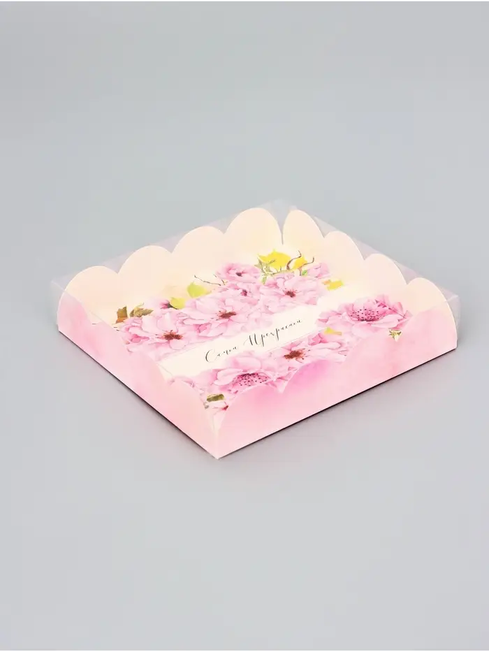 Коробка для печенья, кондитерская упаковка с PVC крышкой, «8 марта», 21 х 21 х 3 см
