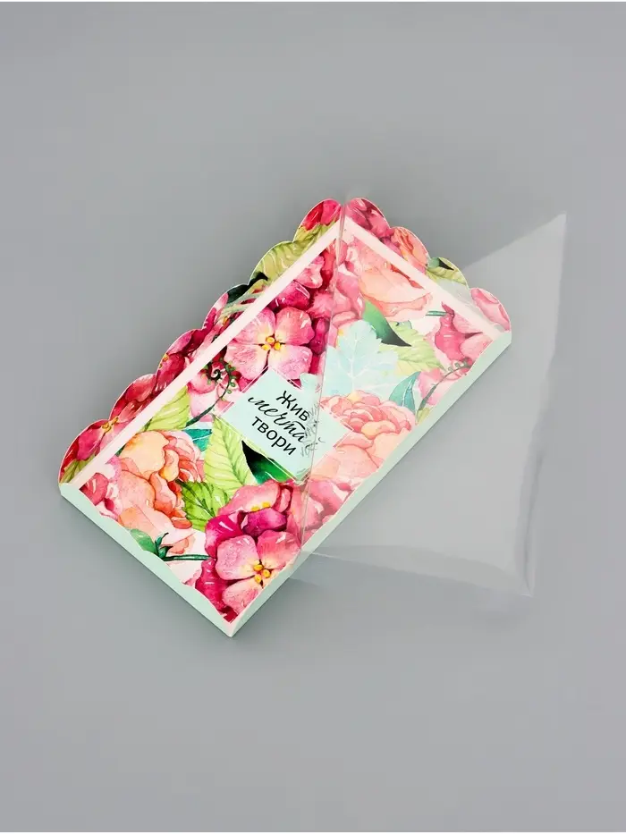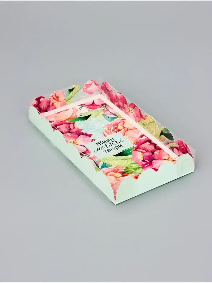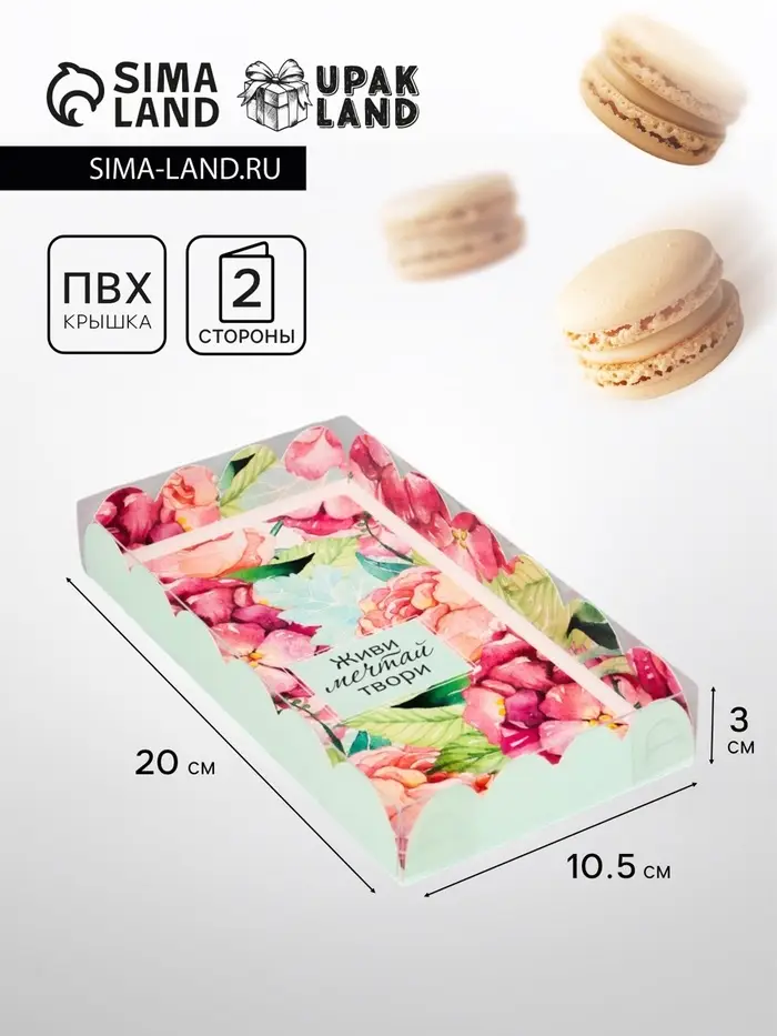 Прочный картон обеспечивает надежную защиту содержимого, а прозрачная крышка позволяет сразу оценить внешний вид угощений без необходимости открывать коробку.