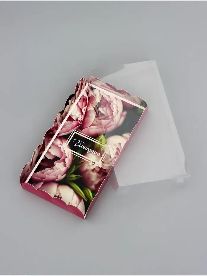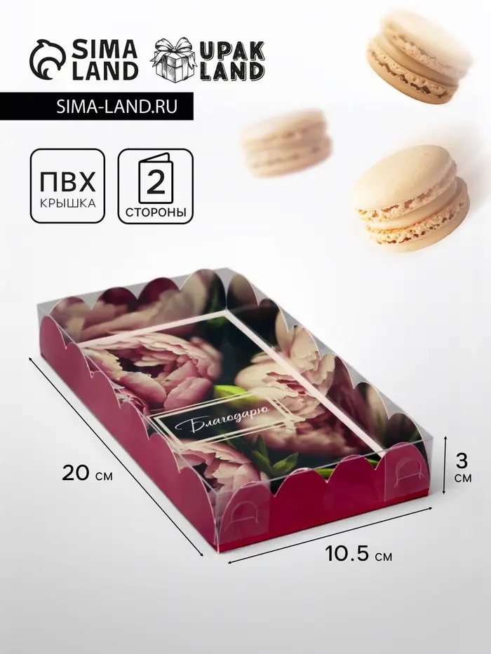 Прочный картон обеспечивает надежную защиту содержимого, а прозрачная крышка позволяет сразу оценить внешний вид угощений без необходимости открывать коробку.