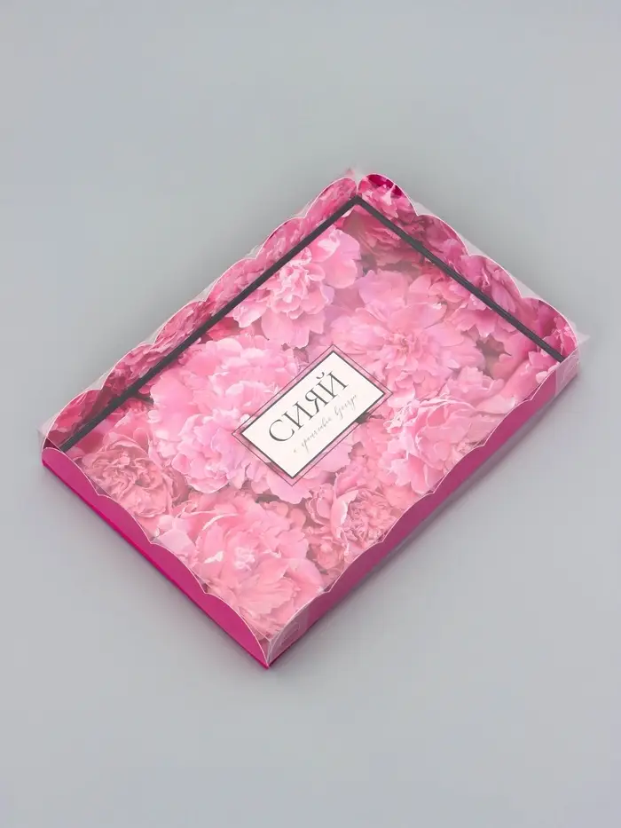 Прочный картон обеспечивает надежную защиту содержимого, а прозрачная крышка позволяет сразу оценить внешний вид угощений без необходимости открывать коробку.