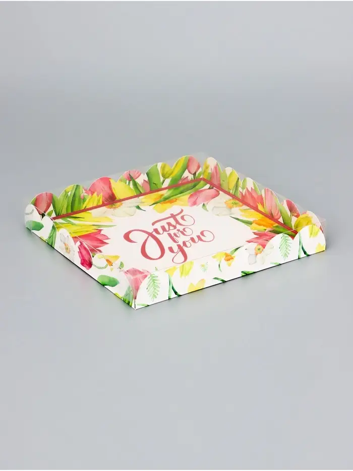 Коробка для печенья, кондитерская упаковка с PVC крышкой, Just for you, 20 х 30 х 8 см