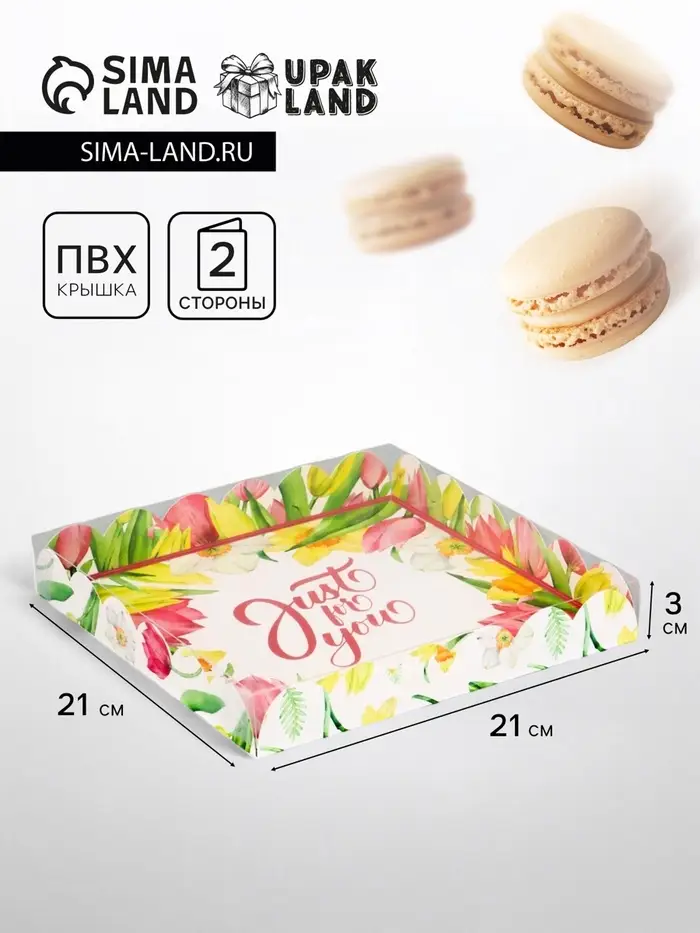 Коробка для печенья, кондитерская упаковка с PVC крышкой, «8 марта», 21 х 21 х 3 см
