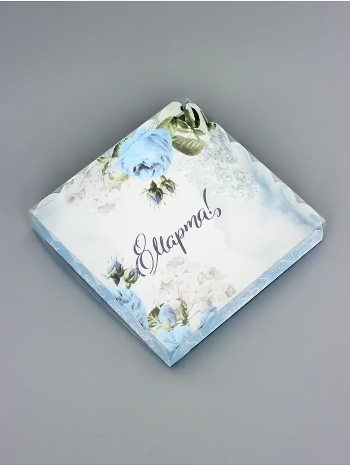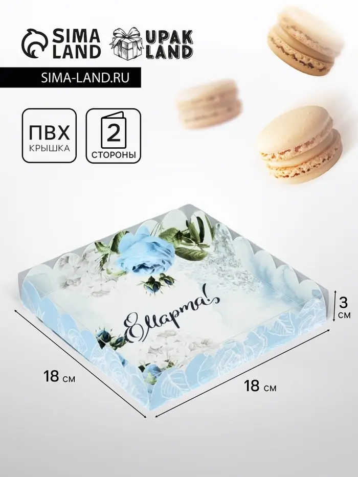 Коробка для печенья, кондитерская упаковка с PVC крышкой, «8 марта», 21 х 21 х 3 см