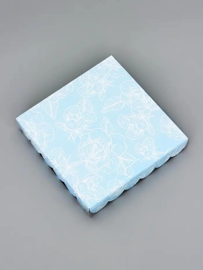 Прочный картон обеспечивает надежную защиту содержимого, а прозрачная крышка позволяет сразу оценить внешний вид угощений без необходимости открывать коробку.