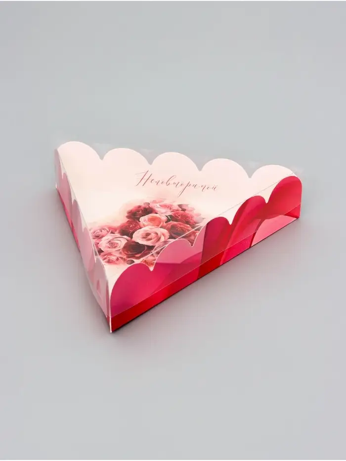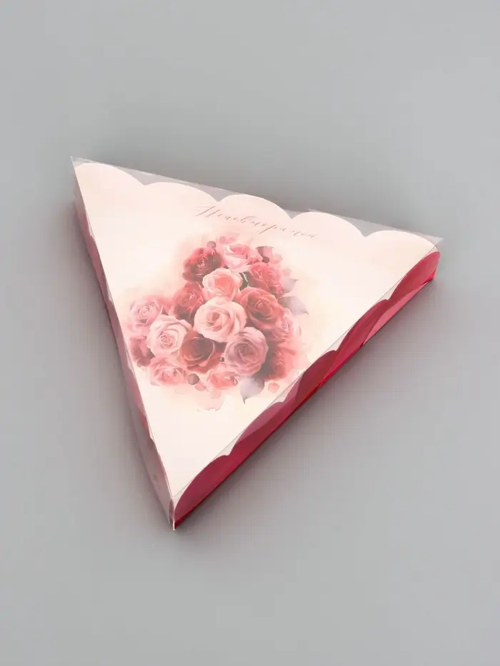 Прочный картон обеспечивает надежную защиту содержимого, а прозрачная крышка позволяет сразу оценить внешний вид угощений без необходимости открывать коробку.
