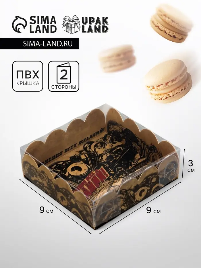 Коробка для печенья, кондитерская упаковка с PVC крышкой, «23 февраля», 21 х 21 х 3 см