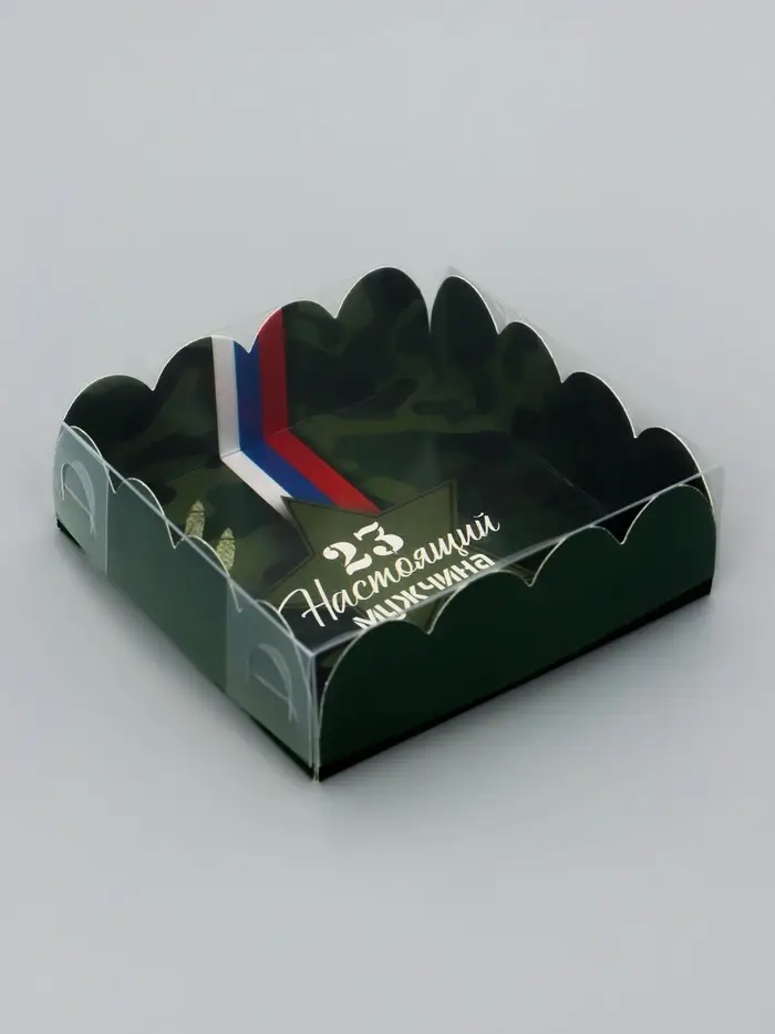 Коробка для печенья, кондитерская упаковка с PVC крышкой, «23 февраля», 21 х 21 х 3 см