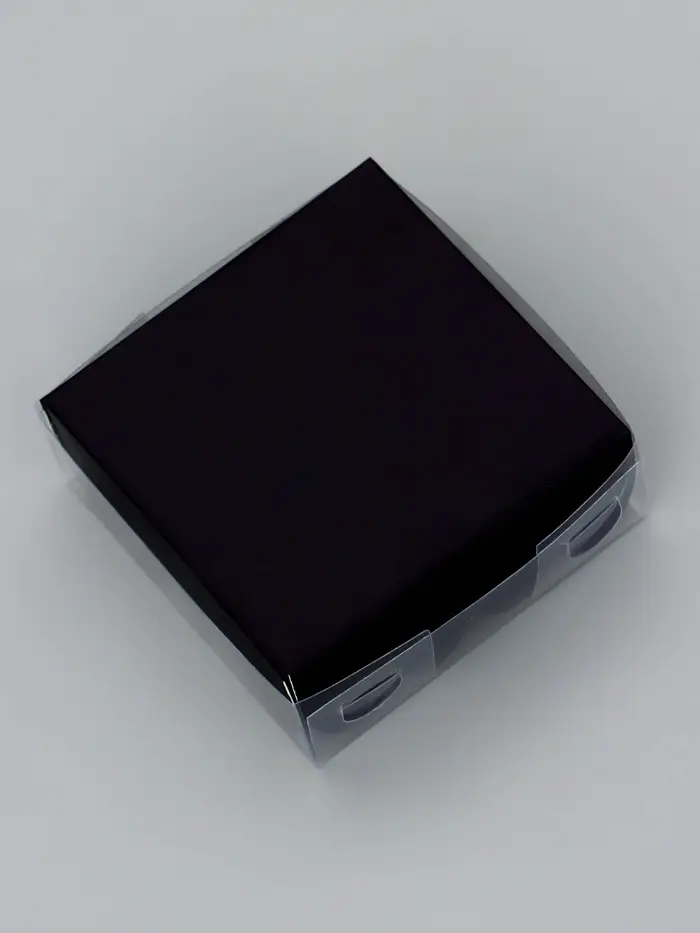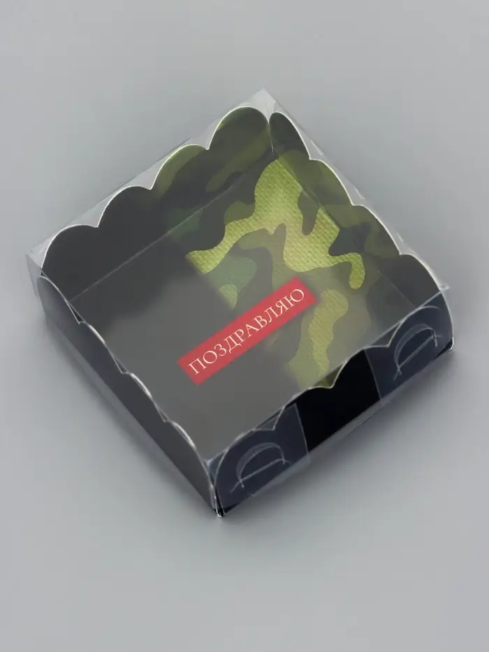 Прочный картон обеспечивает надежную защиту содержимого, а прозрачная крышка позволяет сразу оценить внешний вид угощений без необходимости открывать коробку.