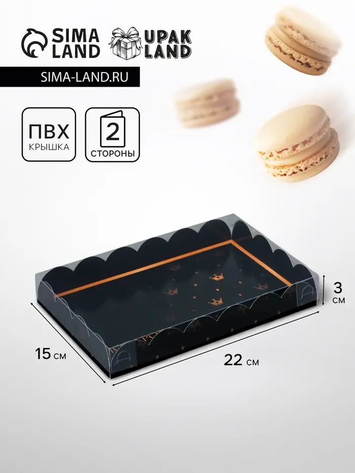Прочный картон обеспечивает надежную защиту содержимого, а прозрачная крышка позволяет сразу оценить внешний вид угощений без необходимости открывать коробку.