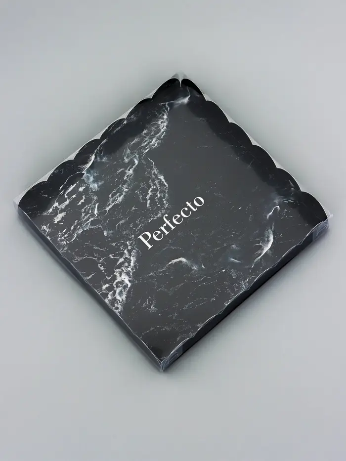 Прочный картон обеспечивает надежную защиту содержимого, а прозрачная крышка позволяет сразу оценить внешний вид угощений без необходимости открывать коробку.