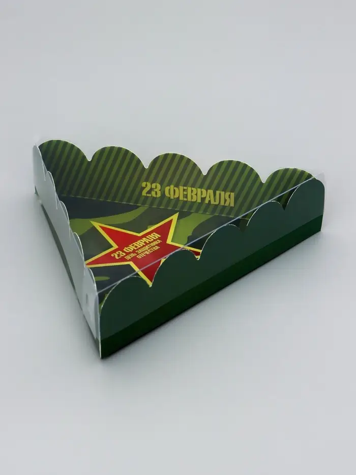Коробка для печенья, кондитерская упаковка с PVC крышкой, «23 февраля», 21 х 21 х 3 см