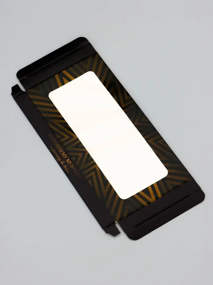 Эта упаковка сочетает в себе минимализм и выразительность. Она не только защищает шоколад, но и добавляет подарку индивидуальности. Чёрный цвет и тематическая надпись делают её универсальным решением для поздравления мужчин, а компактные размеры — удобными для хранения и транспортировки.
