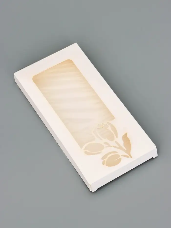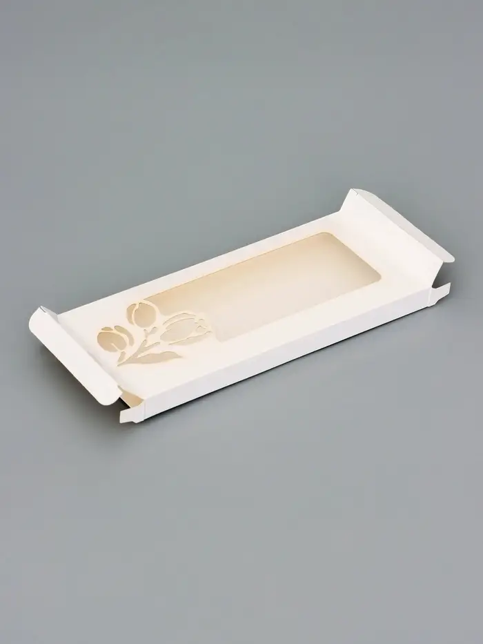 Коробка для шоколада с окошком — это стильная и универсальная упаковка, которая подойдёт для любого праздника. Её лаконичный дизайн с тюльпанами и аккуратное вырубное окно делают её идеальным выбором для подарка на 14 Февраля, 8 Марта или День рождения. Коробка легко складывается и надёжно защищает шоколад, сохраняя его презентабельный вид.