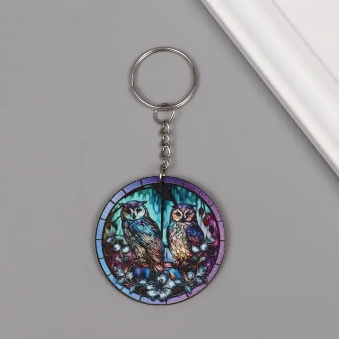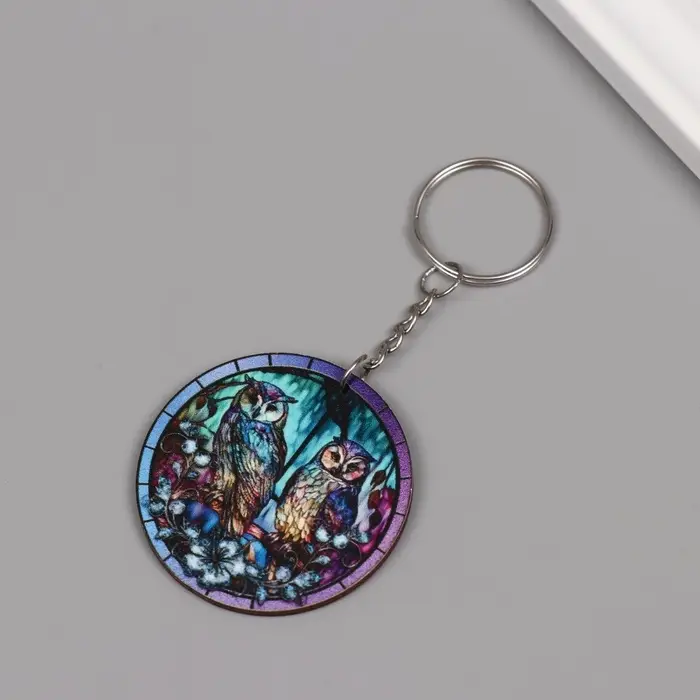 Брелок дерево "Две совы в ночном лесу" 4,6х4,6х0,3 см