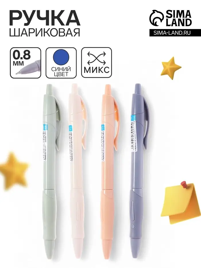 Ручка шариковая 0.8 мм, стержень синий на масляной основе, МИКС