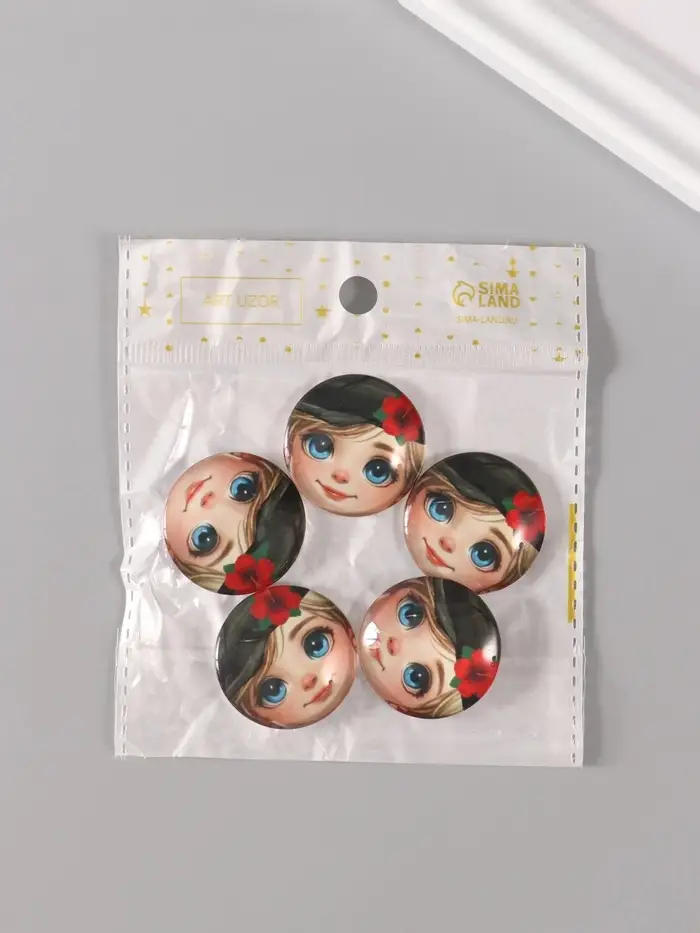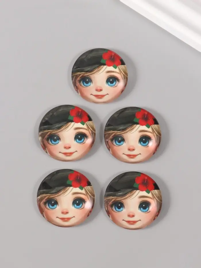 Кабошон стекло для творчества "Круг. Мальчишка в картузе с цветком" 3х3 см
